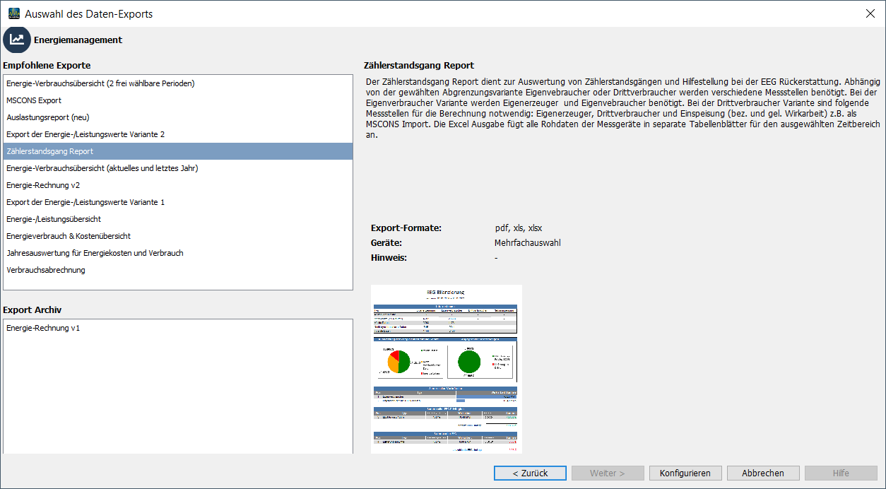 Abhängig von Ihrem Messkonzept (z. B. Eigenverbraucher- oder Drittverbraucher-Abgrenzung) sind nicht immer alle Einträge wählbar. |