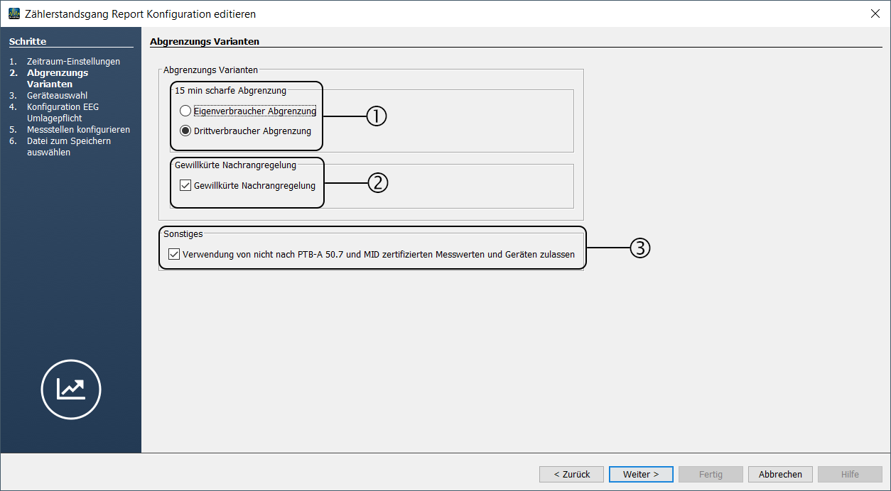 2. Schritt Auswahl der Abgrenzungsvarianten: