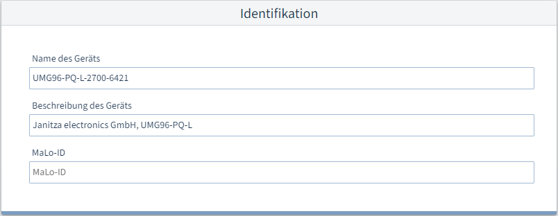 Zur eindeutigen Unterscheidung eines Gerätes geben Sie einen Namen ein (max. 127 Zeichen). Der Name wird in der Kopfzeile des Gerätedisplays und in der Software GridVis® angezeigt.