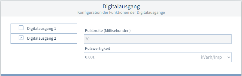 Der Ausgang arbeitet als Impulsausgang. Bei Erreichen einer bestimmten Wirk- oder Blindenergiemenge wird ein Impuls am Ausgang ausgegeben.