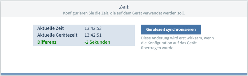 - Klicken Sie auf die Schaltfläche Gerätezeit synchronisieren, um die UTC-Zeit vom PC an das Messgerätes einmalig manuell zu übertragen.