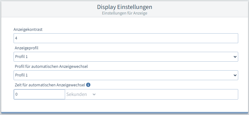 Wenn eine Zeit > 0 Sekunden eingestellt ist, wechselt die Anzeige automatisch zur nächsten Anzeige aus dem gewählten Anzeigewechsel-Profil.